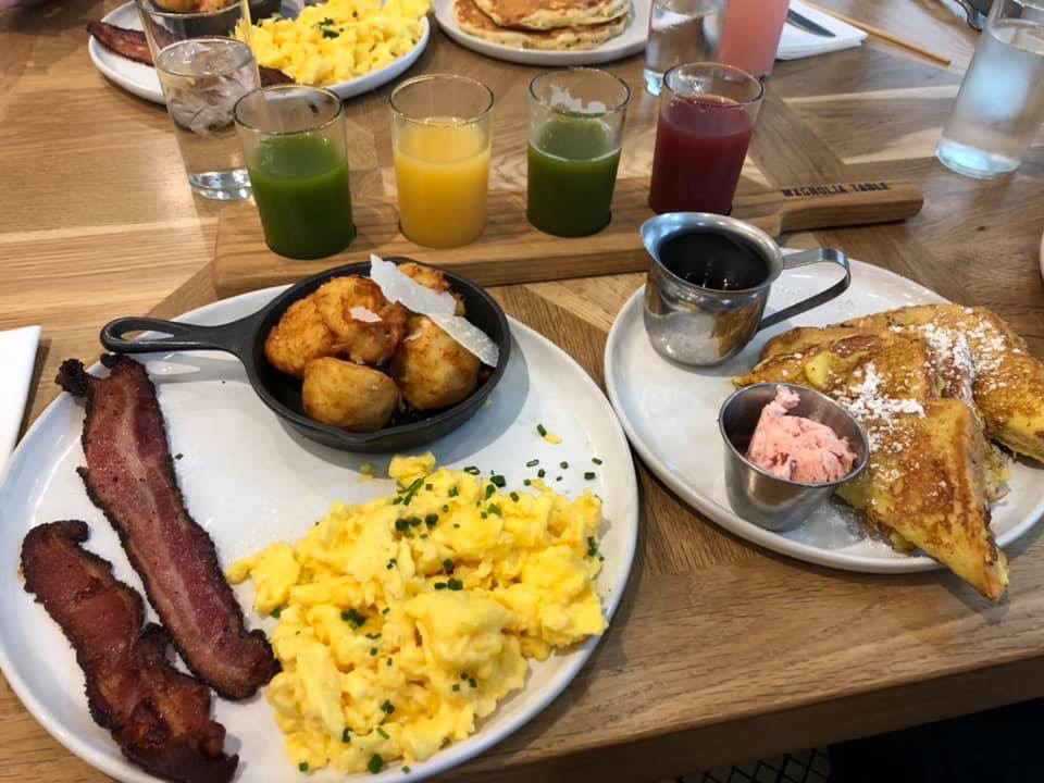 At last it was time to be seated at Magnolia Table. I was feeling adventurous so I ordered the juice flight. This consisted of four different blends of juices: Fresh Face, Fresh Greens, Fresh Start and Fresh Veg. Delicious! Such unique blends. The drinks were just the tip of the iceberg compared to the taste bud pleasing experience that was yet to come. I have never tasted eggs nor bacon that tasted so good. And the strawberry butter! I can’t wait to go back just to have another sampling. A very hearty breakfast that did not disappoint.