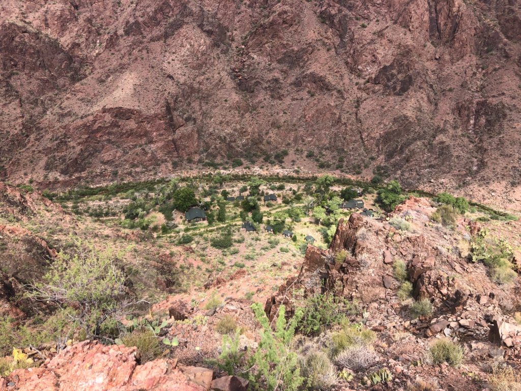 We were pretty sore the next day, but we did want to explore the area a bit. Not wanting to waste our time at the Phantom Ranch in the Grand Canyon we headed out on two short hikes. Our favorite was the trail that took us up a nearby cliff and gave us an aerial view of the camp. With the green rooftops on the cabins, the camp blends in so well, even when you know what you’re looking for!