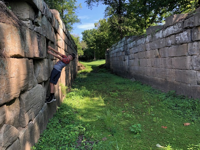 It sounds strange, but there were more giggles than you could imagine as we respectfully walked the grounds. It started by an arch that the kids pretended was a time portal. From there it went to funny stories based on names that we read (or misread) such as Pugh, Gross, Roach and H.A.