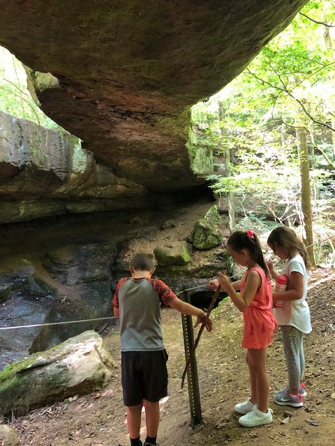 Jumping back in the car, we headed west on 33 to Rockbridge where we hiked 1.75 miles to the Natural Bridge. We identified a few trees and talked about erosion, both to soil and to rock. The bridge is quite intimidating, so we opted to walk under it to examine its beauty.