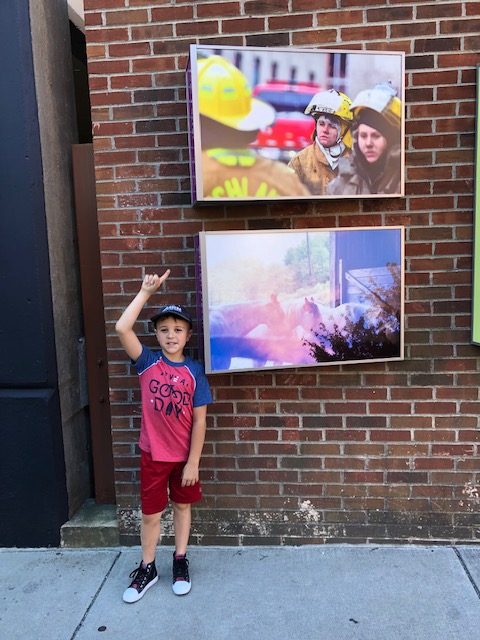 After exhausting our time at the cemetery we headed to the Athens County Courthouse. As you walk downhill from the courthouse, you’ll come to the original courthouse and also a photography display. These pictures are so beautiful and intriguing. Each child picked his/her favorite and then we took the ‘Public Art’ photo and decided to have some fun.