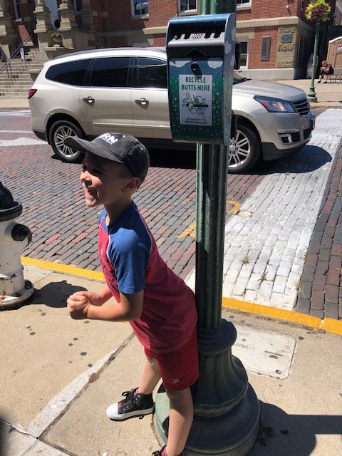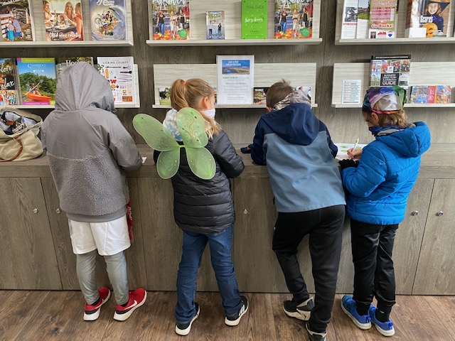 Our first stop when we arrived in this cute, little town was the Visitor’s Center. It is here that you pick up your Fairy Trail Passport (and find your first fairy door). The Fairy Trail is great because it not only is a fun, free activity, but it introduces you to the local businesses. It also serves as a great way to work on map reading skills. Inside the Visitor’s Center, there are free postcards for visitors to write and address. (This was another good learning activity: addressing a postcard). The Visitor’s Center will mail them at no charge. Who doesn’t love to get snail mail?!