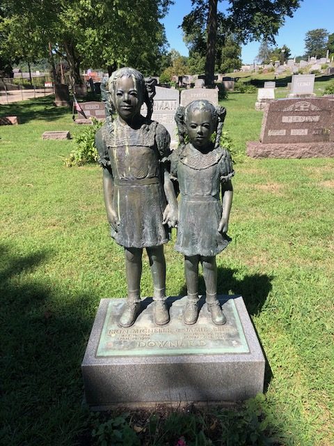 Down the street, just past the fairgrounds, is a large cemetery. Initially we went there to learn about two particular headstones featuring two little girls and a log. There ended up being flags that needed put back in place and headstones that needed grass brushed off. Showing respect for those that have passed ended up kind of being our theme.