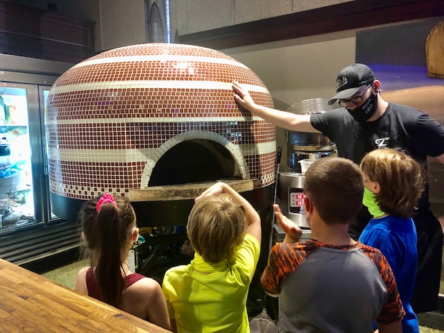 After all that hiking, we were all getting hungry so we headed to downtown Newark for lunch. A stop at Elliot’s Wood Fired Kitchen and Tap was even better than I had imagined. The cook gave the kids a little Cooking 101 by explaining how the wood fired oven operates. The kids were shocked that it was 600 degrees inside but just barely warm to the touch on the outside. They also couldn’t believe it only takes 4 minutes to cook a pizza. Rave reviews followed after the kids took their first bite. Even in the car on the way home comments were made about how good the pizza tasted.