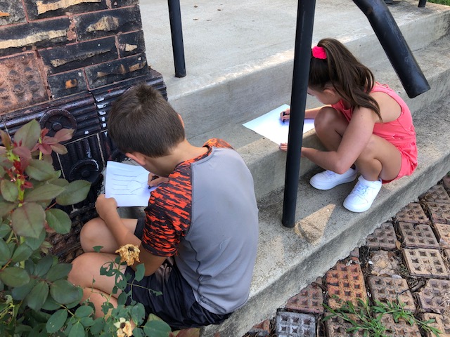 After leaving the castle, I handed out a booklet to each child. On each page was an outline of a building found in Circleville’s downtown. I was impressed at how well they were able to find the buildings by just using the general outline. As each building was found, they got to tape a printed picture of that building next to its negative space image. Fun fact: Circleville’s County Courthouse used to be round with the town circling around it. The courthouse was replaced with a squared off building and the town streets followed suit.