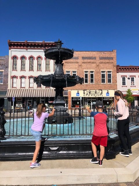 Right around the corner from the depot is Nelsonville’s original downtown square. I just love the cozy feel of this area. With the second story balcony, the Opera House and the fountain, you can almost imagine what it was like on a bustling Saturday night. The kids threw in their pennies, made a wish, found two styles of brick and learned a bit of history about the town.