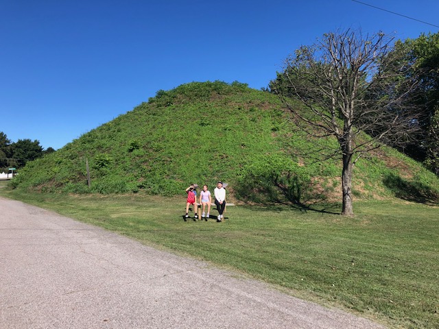 On down 33, we stopped at The Plains. Taking the first right after you get off the exit, you’ll take a right on Mound St and there will be the largest Adena Indian mounds left in this area. A nice map in front shows where other smaller burial mounds are located and there is also a plaque telling about the Adena history.