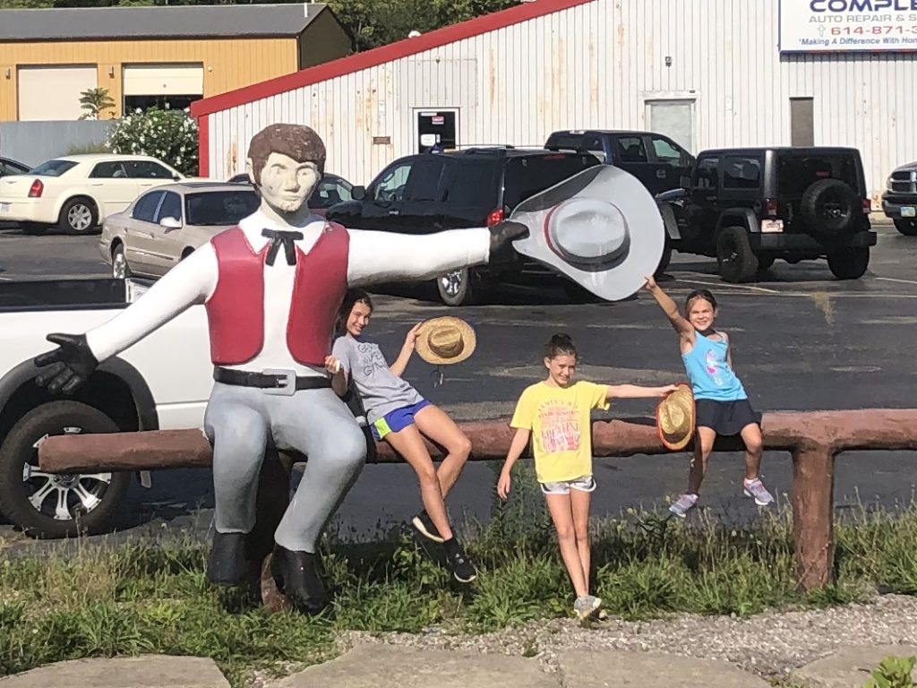 Our first destination was a bit of an odd roadside attraction. The huge cowboy that used to welcome hungry customers to the Western Pancake House now sits waving his hat at the traffic that passes him by. There are two different cowboys located fairly close together. The first one we stopped at looks almost directly at the small overpass bridge. You must pull into the car dealership to get up close (2125 Harrisburg Pike). The second cowboy is in front of a restaurant at 1425 Frank Rd. I related these guys to our current Frisch’s Big Boy. We talked a lot about branding, logos, advertising and icons throughout the day.