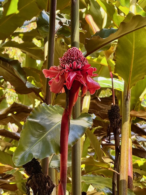 We did not navigate the entire Road to Hana due to time and weather restraints. Our turn around point was the Keanae Arboretum. This very small nature loving oasis is home to a bamboo cluster, a eucalyptus cluster, some amazing Ficus trees, Torch Ginger, Breadfruit, and an abundant variety of flora.
