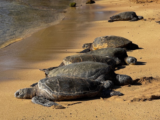 • Seeing four more green sea turtles sunbathing on the black sand.