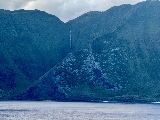 Nature has a way of doing its own thing regardless of what plans you have made. Attitude is everything. Because the swells were too high to tender on our Kona port day, the captain of the ship made the decision that it was unsafe to dock. That meant we would be spending a day at sea instead, heading to our next destination. He maximized our change of plans by choosing to sail past the cliffs of Molokai, the tallest sea cliffs in the world. The only way to view these cliffs is by helicopter or boat.