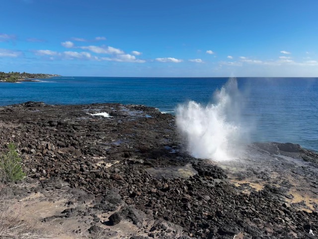 There are signs to the spouting horn near Poipu Beach. It’s nothing over the top but it is fun to watch. As the waves crash against the rocky shore, water makes its way into lava tubes creating a natural blowhole. The wave size will be the deciding factor on how big of a burst you’ll see.